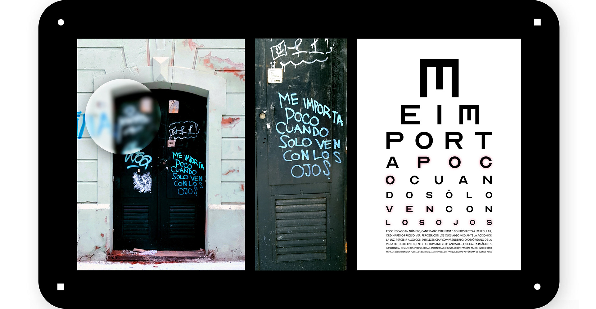 If there are formats for expression, the street is the one that stands out the most. It allows us to release with euphoria everything that our being distills, so that others can enjoy our emotions. Based on a sentimental flash, embodied in a door, this poster is created using as its main resource typography. Remember: When the eyes see, the heart sees beyond.